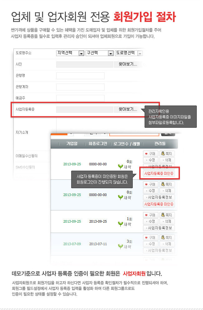 ✅ 사업자등록 등록 및 인증을 통한 업체회원 확인 시스템