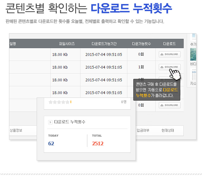 ✅ 다운로드 기간, 횟수 등 콘텐츠 판매에 최적화된 시스템