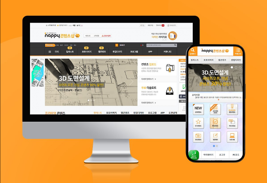 해피 콘텐츠샵 솔루션은 디지털 콘텐츠 유통에 특화된 홈페이지 제작 솔루션입니다.