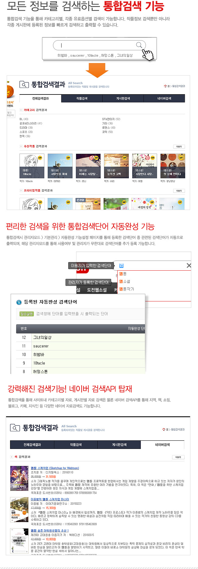연재·관리·유통할 수 있도록 제작된 전문 홈페이지 솔루션입니다.