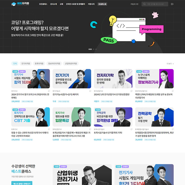 ✔ 학습 관리 → 학습 현황, 문제풀이, 수료증 발급 기능 제공