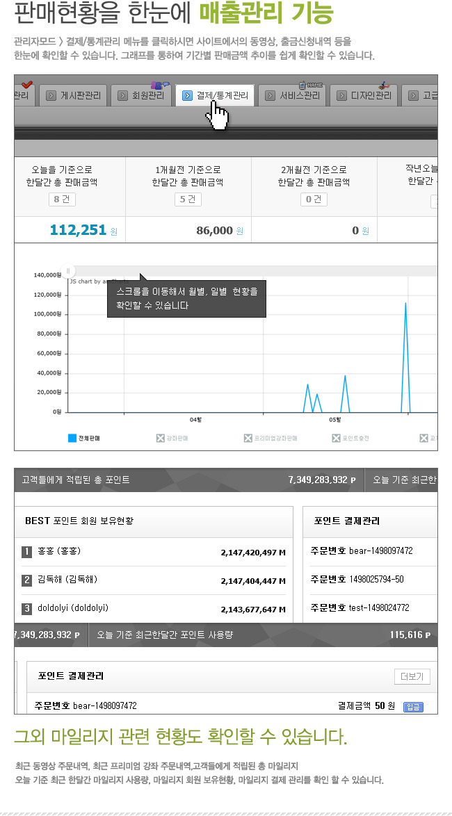 ✅ 운영자 수익을 한눈에 확인 할 수 있는 매출 및 통계관리 시스템