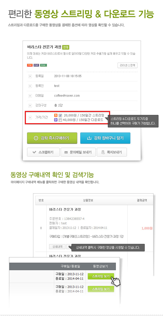 ✅ 웹스트리밍 또는 다운로드 중 원하는 판매방식 선택 시스템