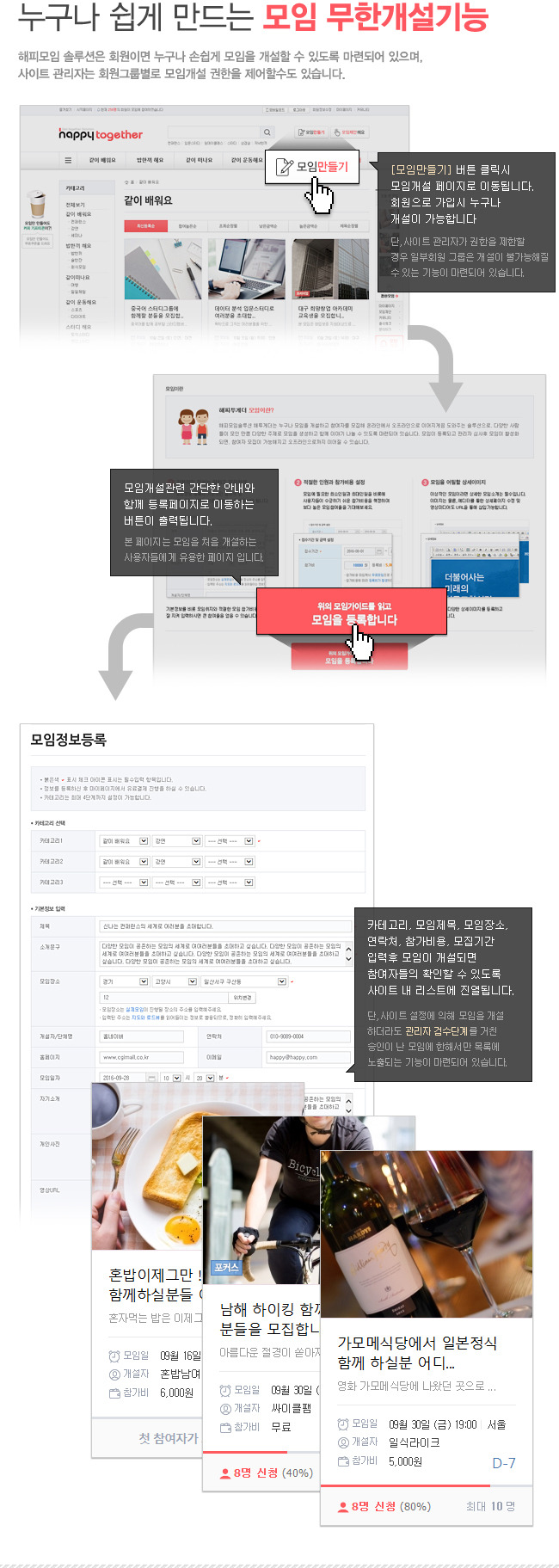 해피 모임/모집 웹솔루션은 다양한 형태의 모임을