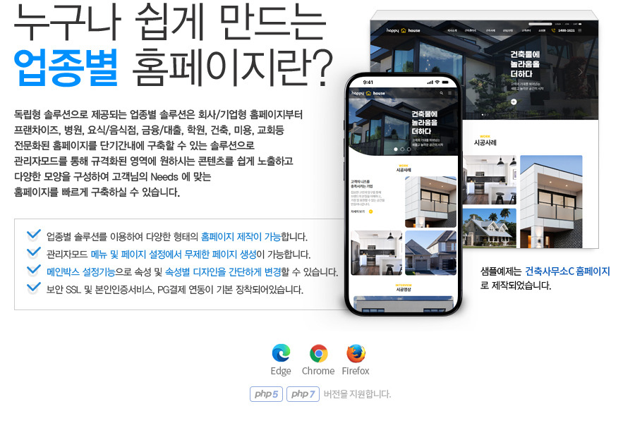 간편 홈페이지 제작 솔루션은 다양한 업종과 목적에 맞춰