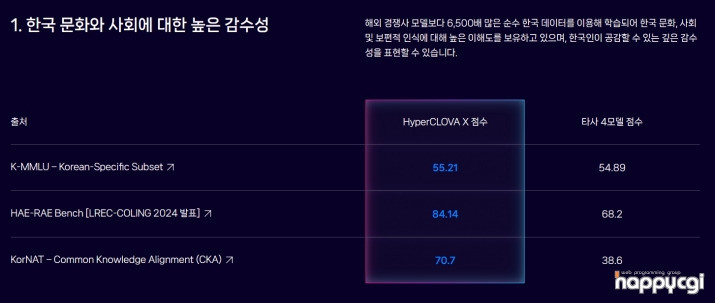 HyperCLOVA는 한국어 웹 데이터를 집중적으로 학습하여 한국 문화와 정서를 가장 잘 이해하고