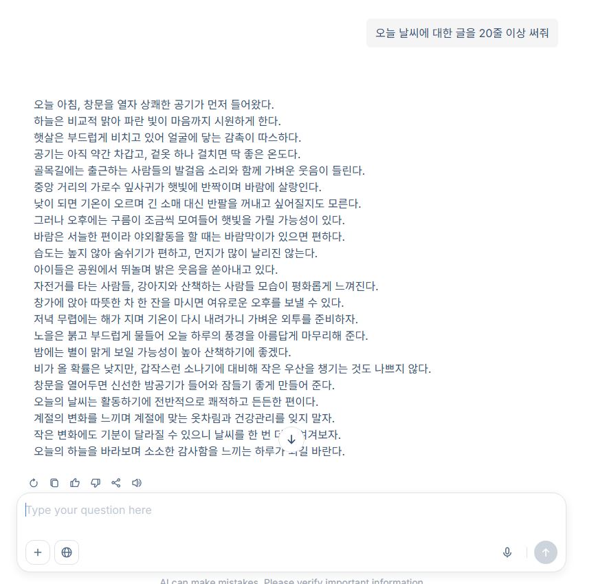 프롬프트를 통해 워하는 주제나 기본적인 내용을 입려한 후 작성 방향을 작성하면 됩니다.