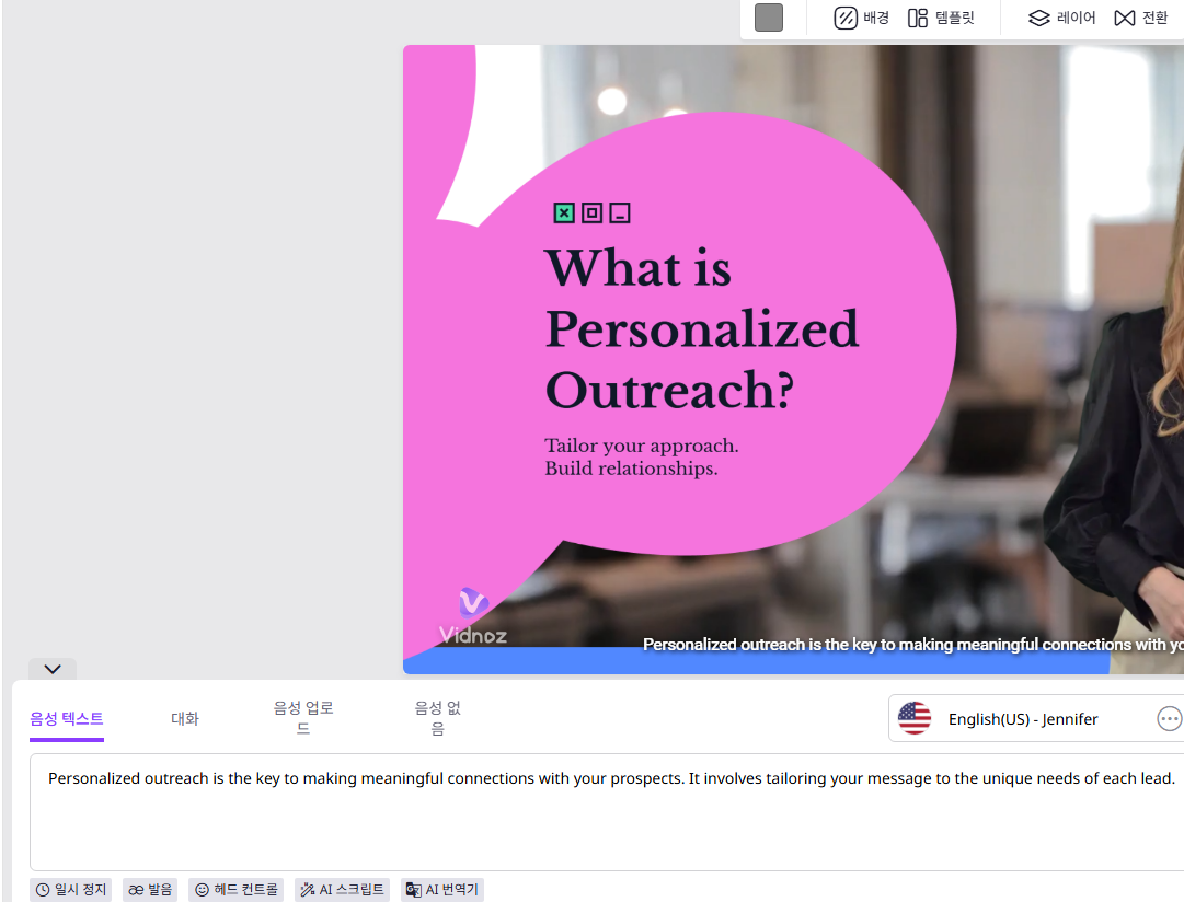 AI 아바타, 음성 및 다양한 비디오를 편집 생성할수 있는 무료 AI 비디오 생성 플랫폼 Vidnoz AI 입니다.