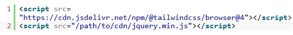 1. 필요한 jQuery 라이브러리와 TailwindCSS를 문서에 로드합니다. 프로덕션 환경에서는 CDN 대신 TailwindCSS CLI 도구를 사용하여 TailwindCSS를 올바르게 설치하는 것이 좋습니다. CDN 버전은 사용자 지정 및 제거 기능이 없습니다.