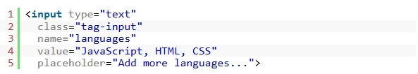 3. 문서 내 모든 표준 입력 필드에 tag-input 클래스를 추가합니다. 쉼표로 구분된 값으로 미리 채워 넣을 수도 있습니다.