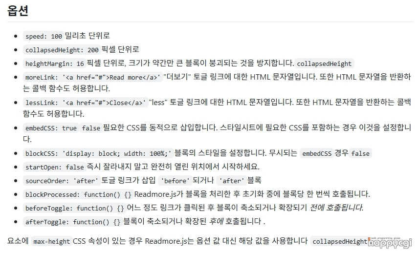 [해피CGI][cgimall] 긴 글을 더보기 링크로 줄여주는 js - Readmore.js 본문