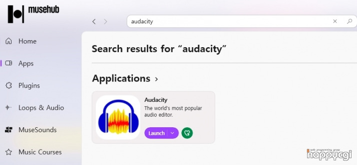 상단 검색에 "audacity" 검색을 진행하여 설치 및 실행을 할 수 있습니다.