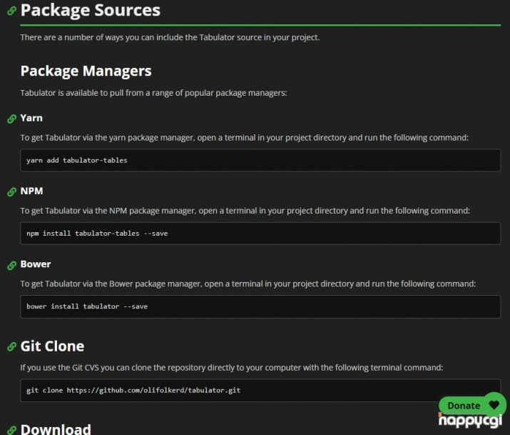설치 및 사용방법은 https://tabulator.info/docs/6.3 페이지에서 확인하여