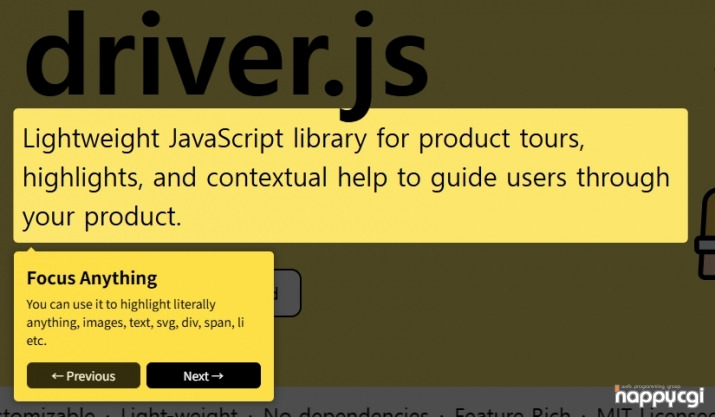 [해피CGI][cgimall] driverjs - 신규 사용자 이탈률을 낮추는 튜토리얼 (온보딩) 스크립트 본문