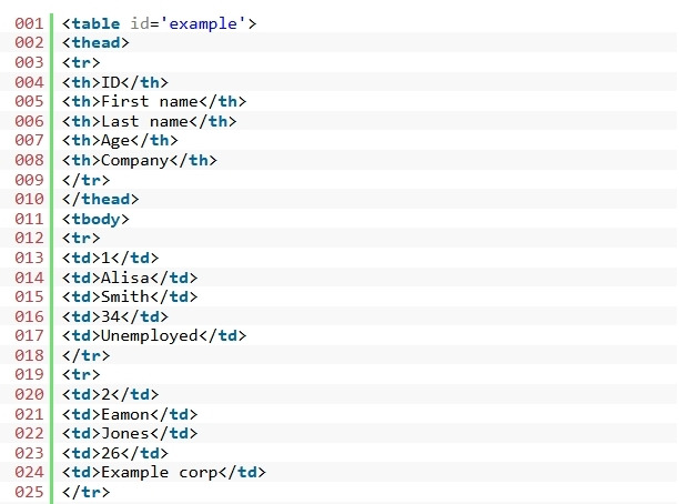 3. 대상 HTML 테이블에서 플러그인을 호출합니다.
