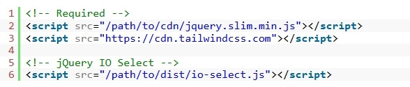 2. 또는 jQuery와 TailwindCSS가 설치된 문서에 'io-select.js' 스크립트를 직접 로드하세요.