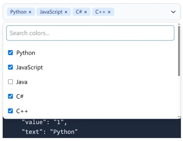 IO Select는 일반 select 요소를 Tailwind CSS로 스타일링된 검색 가능한 태그 입력란으로 변환하는 경량 jQuery 사용자 지정 select 플러그인입니다.