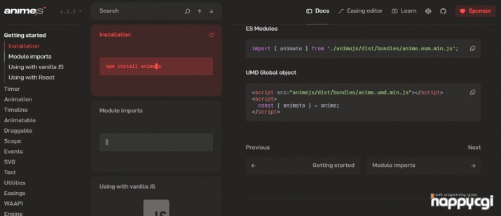 https://animejs.com/documentation/ 페이지에서 사용방법을 확인이 가능 합니다.