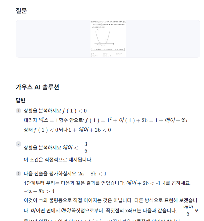 - 다양한 과목 지원: 초기에는 수학 중심이었으나 현재는 화학, 생물, 사회, 영어 등 광범위한 교과목에 대한 질의응답이 가능합니다.