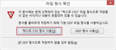 " 텍스트 CSV 형식 사용(U) " 로 선택을 하시면 됩니다.