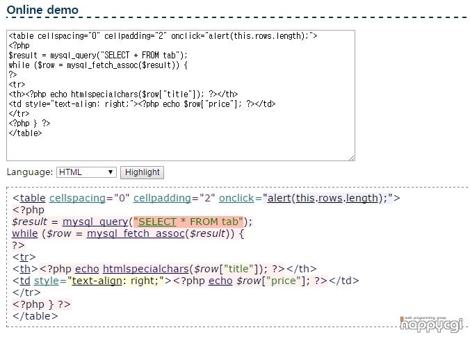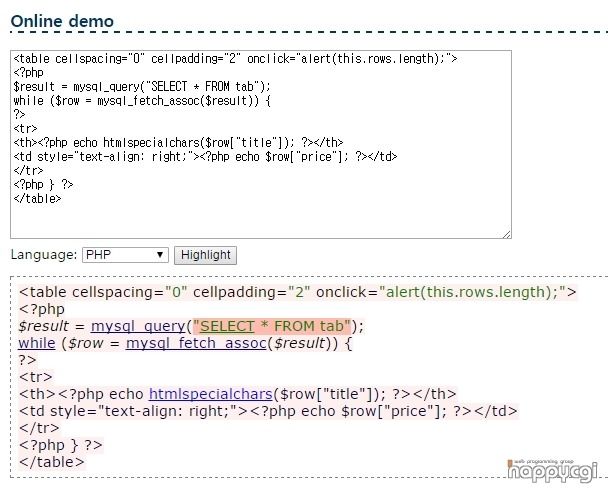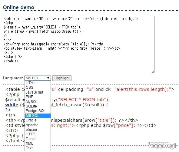 PHP로 하이라이트 할때