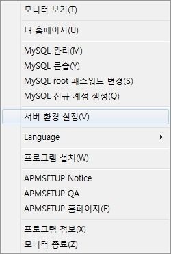 서버환경설정을 클릭하시면 아래와 같이 APMSETUP 서버 설정 메뉴가 나타나며