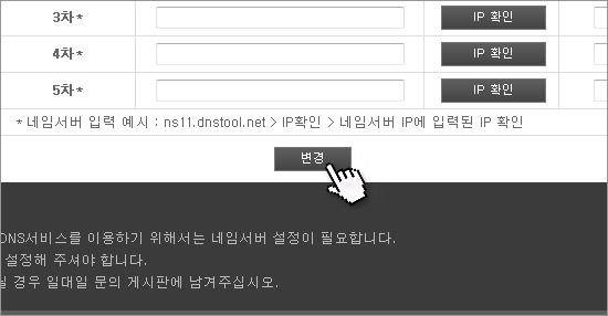 7. 입력완료 후 "변경" 버튼을 클릭하시면 정상적으로 네임서버가 반영됩니다.