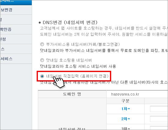 5. 네임서버 직접입력 라디오박스를 선택합니다.