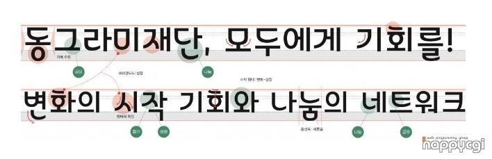 동그라미재단 서체는 동그라미 재단 창립 5주년 기념으로 공유와 나눔 정신을 담은 서체 입니다.