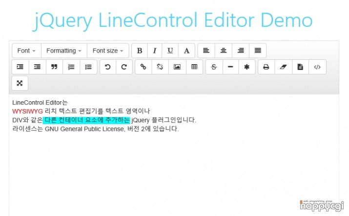 [해피CGI][cgimall] Responsive WYSIWYG Text Editor with jQuery and Bootstrap - LineControl Editor
