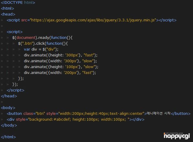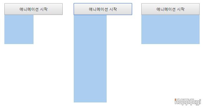 웹프로그램밍 자료실/JAVA 자료 [해피CGI][cgimall] 버튼을 클릭하면 박스 크기가 달라지는 애니메이션 효과 해피CGI윤실장 2019. 12. 6. 09:05 버튼을 클릭하면 박스의 크기가 애니메이션 효과를 내면서 크기가 달라지는 소스입니다.간단한 소스로 애니메이션 효과를 낼 수 있어 유용하게 사용할 수 있을듯 합니다. 저작자표시 (새창열림)