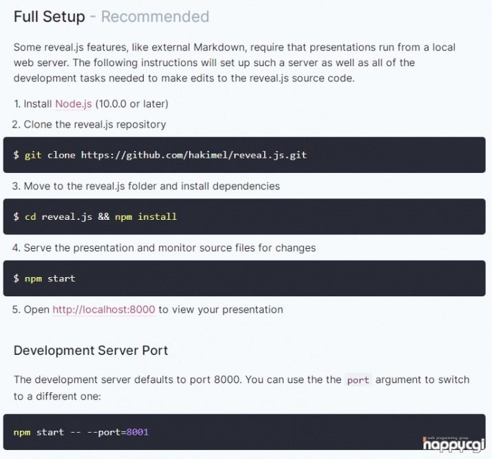 https://revealjs.com/ 페이지에 접속하여 사용법을 확인 할 수 있습니다.