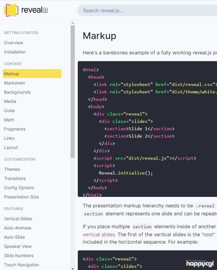 https://revealjs.com/ 페이지에서 확인을 할 수 있습니다.