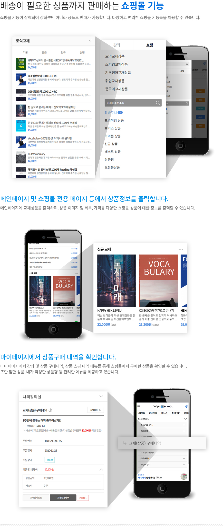 해피 인터넷강의+쇼핑몰 솔루션 타입B 모바일 Ver2.0 (장착옵션) 이 새롭게 버전업 하였습니다.
