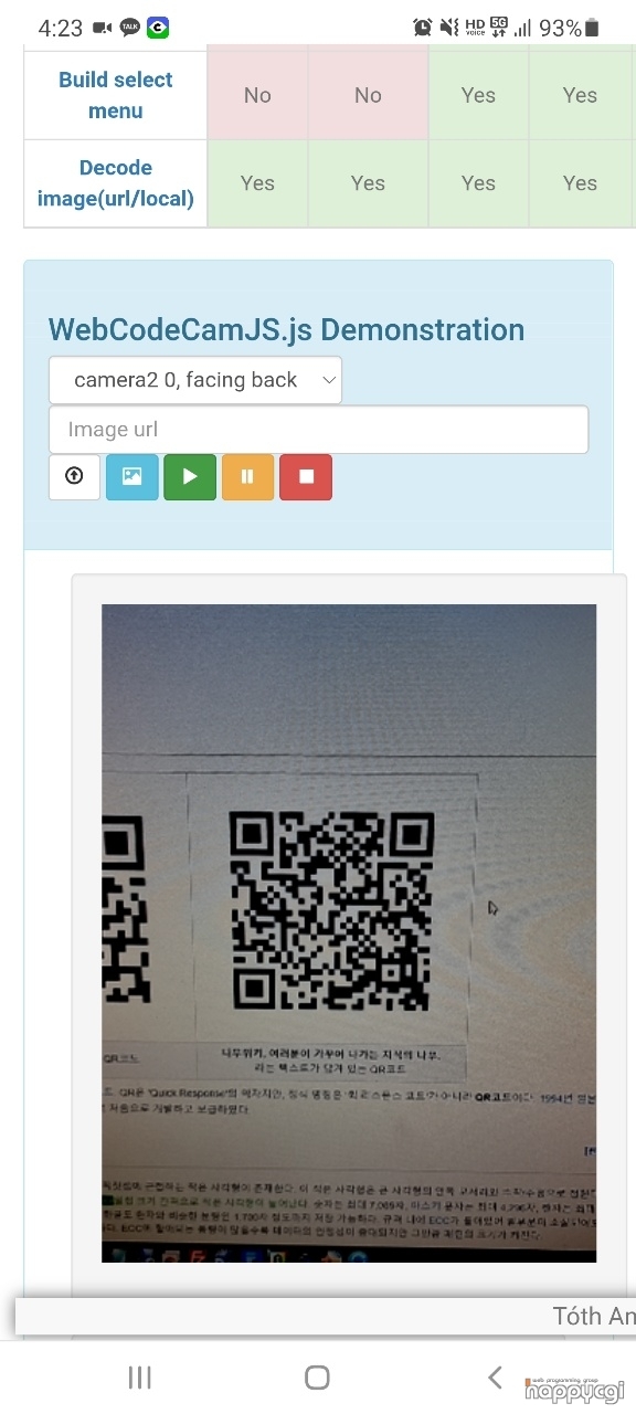 카메라를 사용할 수 있는 모바일 기기를 통해 데모페이지에 접근하였습니다.