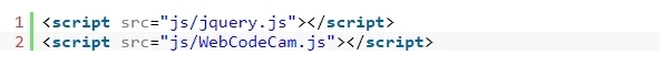1. 파일 상단에 Jquery 라이브러리와 WebCodeCam.js 파일을 로드합니다.