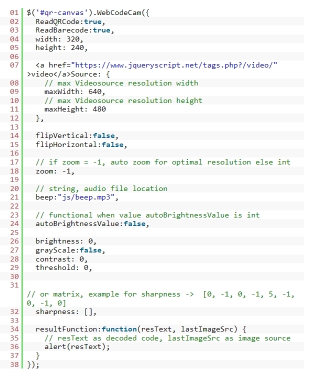 4. WebCodeCam 플러그인을 호출합니다.