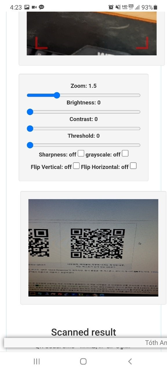 아래는 QR코드를 스캔한 결과입니다. (Scanned result)