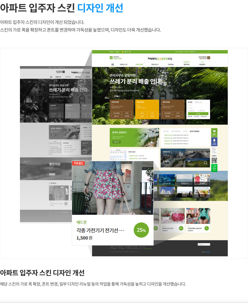 [업그레이드] 간편 홈페이지 아파트 입주자 스킨이 리뉴얼 되었습니다