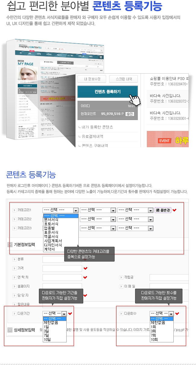 ✅ 다운로드 기간, 횟수 등 콘텐츠 판매에 최적화된 시스템
