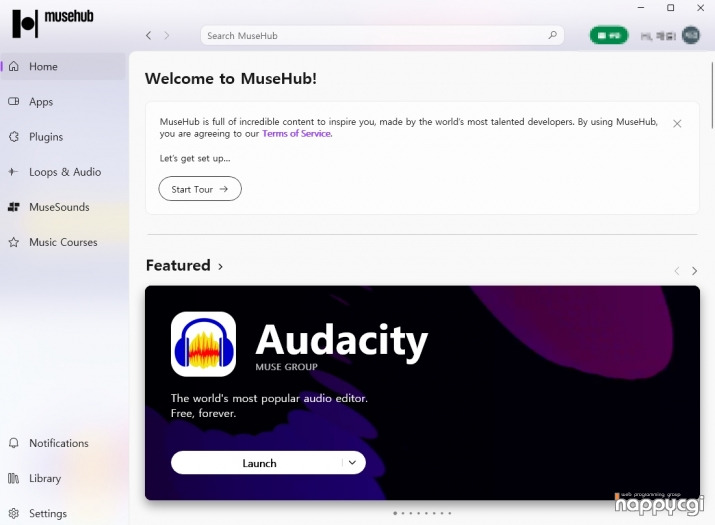 상단 검색에 "audacity" 검색을 진행하여 설치 및 실행을 할 수 있습니다.