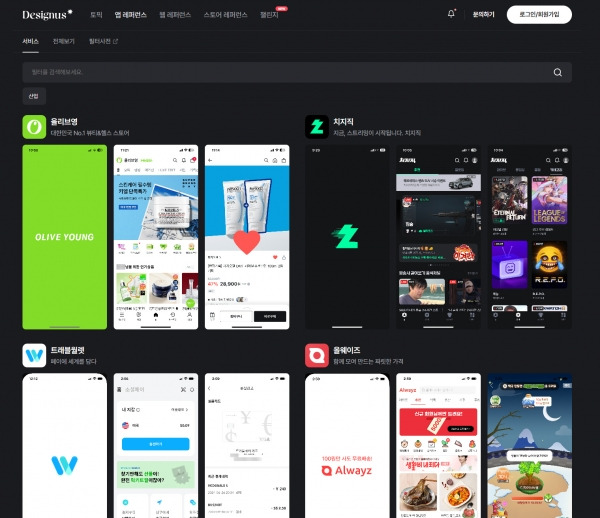 웹프로그램밍 자료실/기타 자료 [해피CGI][cgimall] designus 디자이너스 국내 ui/ux 벤치마킹 사이트 해피CGI윤실장 2025. 12. 2. 09:02 앱레퍼런스 웹레퍼런스 스토어 레퍼런스 국내 환경/트렌드에 맞추어져 있고 "앱 레퍼런스”, “웹 레퍼런스”, “스토어 레퍼런스" 로카테고리가 분리되어 있어 이용이 편리합니다. 저작자표시 (새창열림)