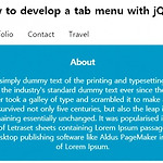 css 와 jquery 를 이용하여 아래와 같이 탭 메뉴를 생성할 수 있습니다. 소스는 아래와 같습니다. 스타일과 jquery 를 같이 사용하였습니다. 소스는 첨부파일에 html 파일을 zip 파일로 압축하여 첨부해두었으니 다운받아 사용하시기 바랍니다.