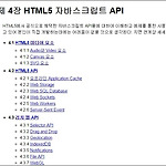 HTML5에서 공식으로 채택한 자바스크립트 API들에 대하여 이해하기 쉽도록 예제와 참고사이트에서 제공하는 내용을 번역 또는 실정에 맞게 의역한 사이트 입니다 ^^ 앞으로 사용될 HTML5에 도움이 될것같아 자료를 찾아보았네요 ~ 자세한 내용은 상단의 링크를 통해서 페이지 내용들을 확인하실 수 있습니다